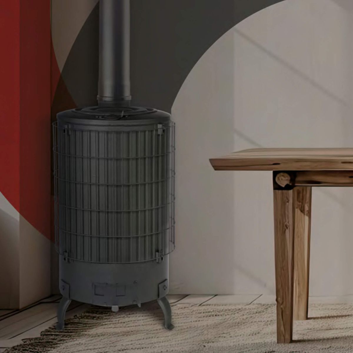 Estufa redonda de chapa sin parrilla , 84% de eficicencia