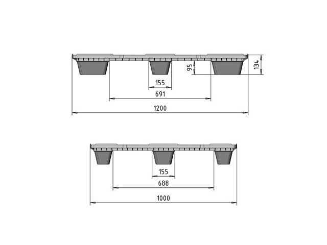 Geroosterde kunststof pallet 1200x1000 mm PPRB1210AN